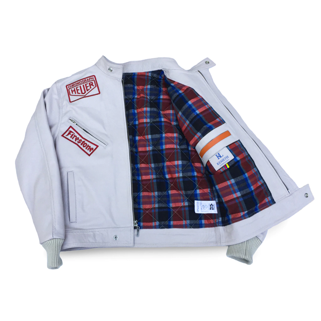Sumérgete en la elegancia atemporal con la MR Cool 917 White KL, una chaqueta tipo vintage diseñada para los verdaderos entusiastas del automovilismo. Esta joya está confeccionada en cuero 100% natural, reflejando el lujo y la esencia clásica de la época dorada del automovilismo mundial.